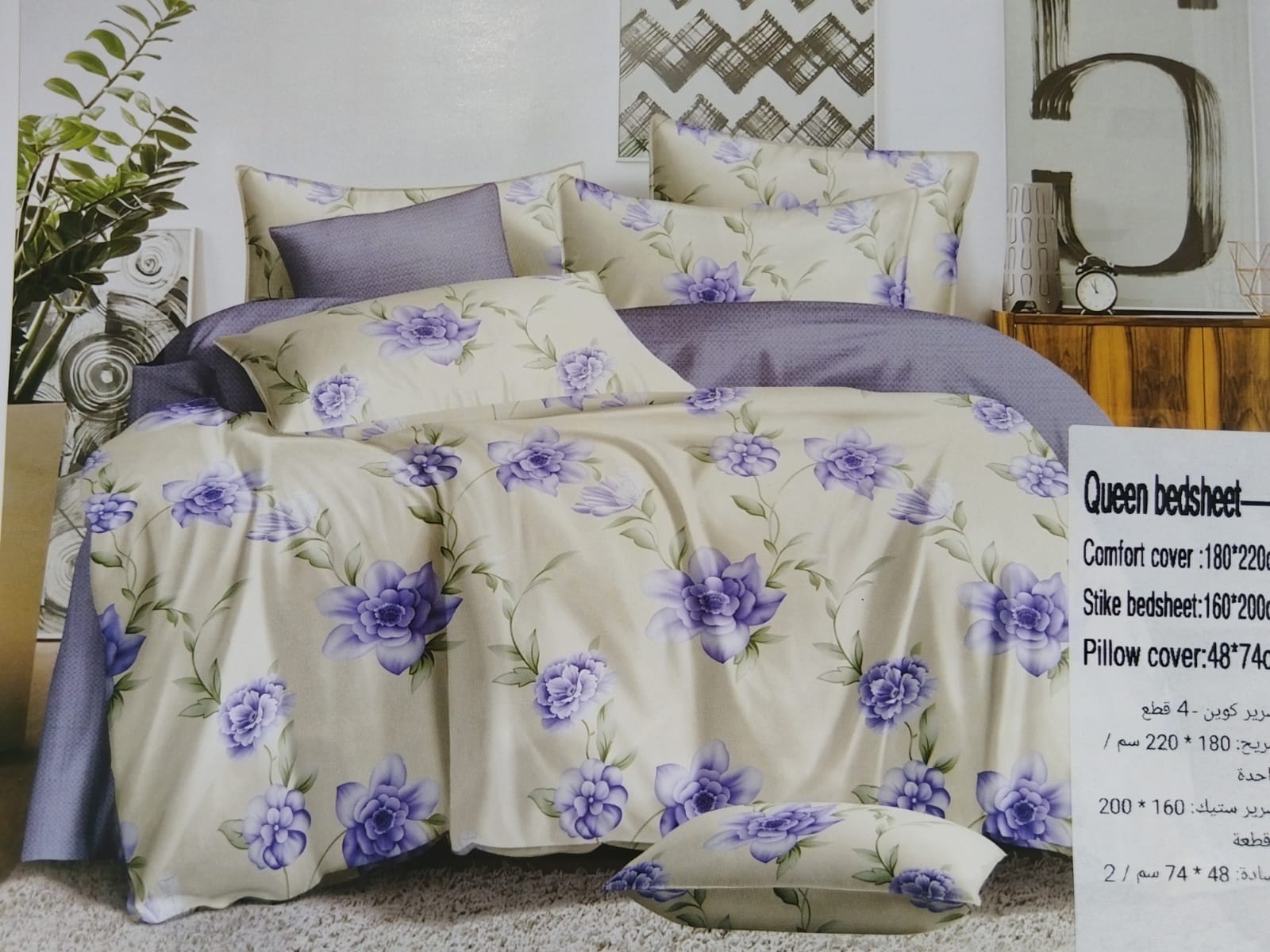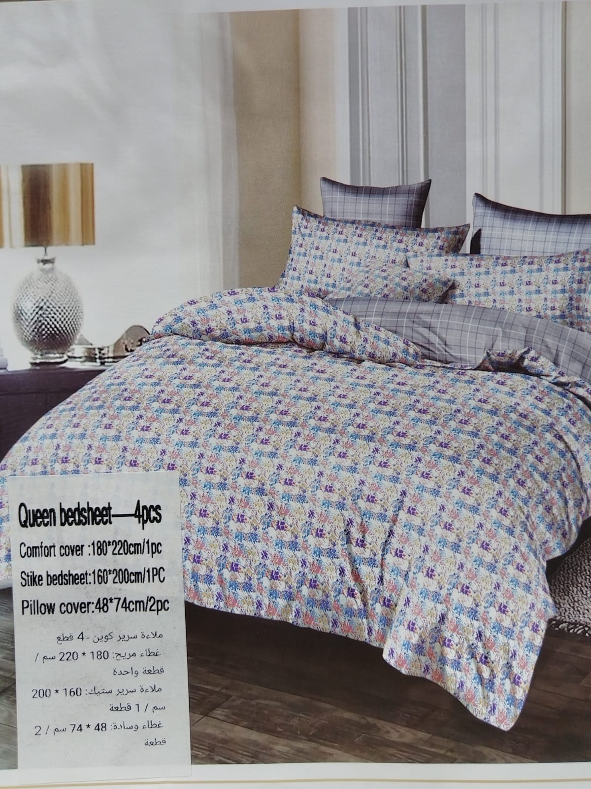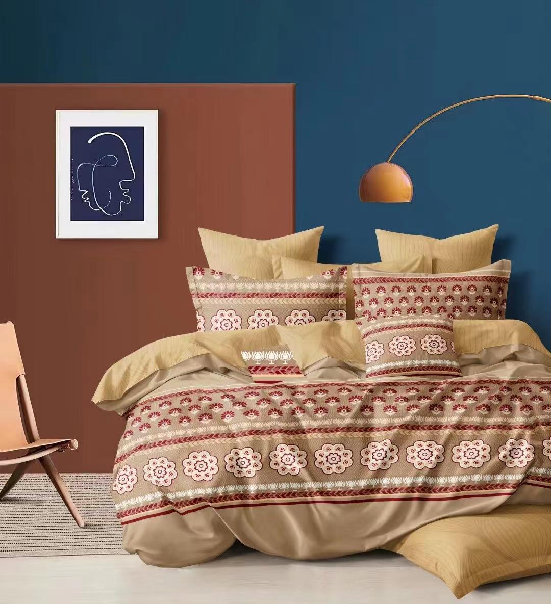 غيّر غرفة نومك مع طقم أغطية اللحاف المكون من أربع قطع، والمصنوع من قماش قطني 100%. يتميز هذا الطقم المطبوع الفاخر بكثافة خيوط تصل إلى 300 خيط، وهو ناعم للغاية ولطيف على البشرة، مما يضمن لك تجربة نوم مريحة وهادئة.