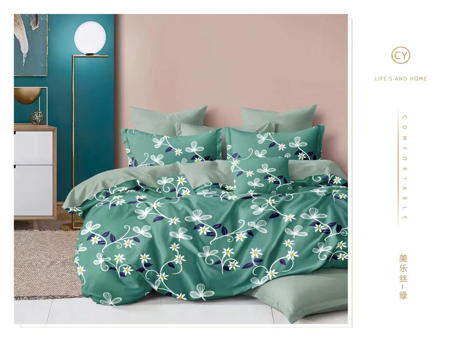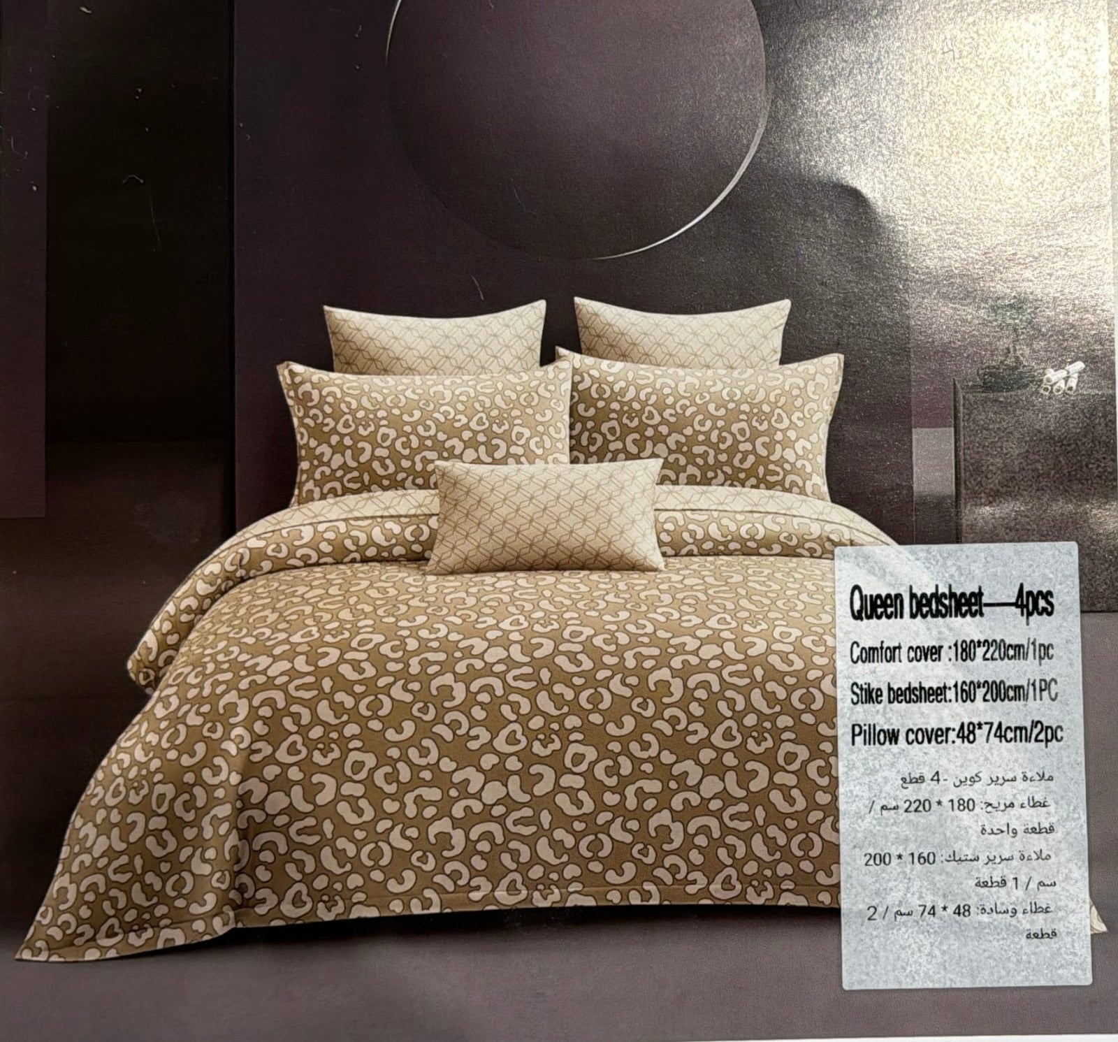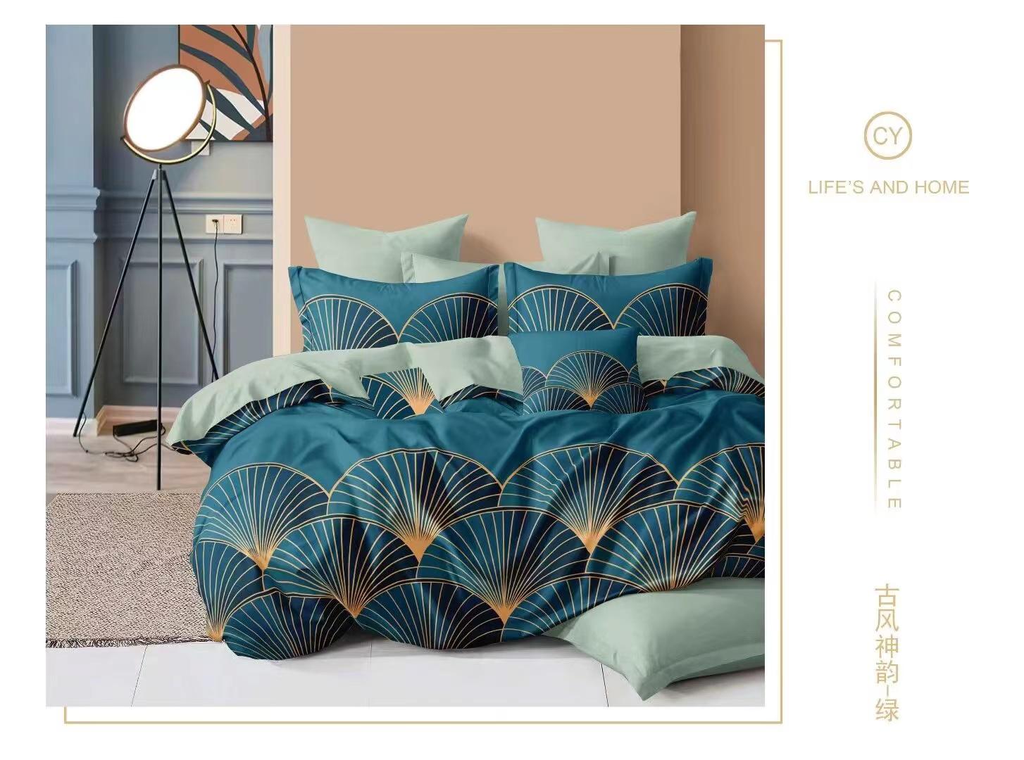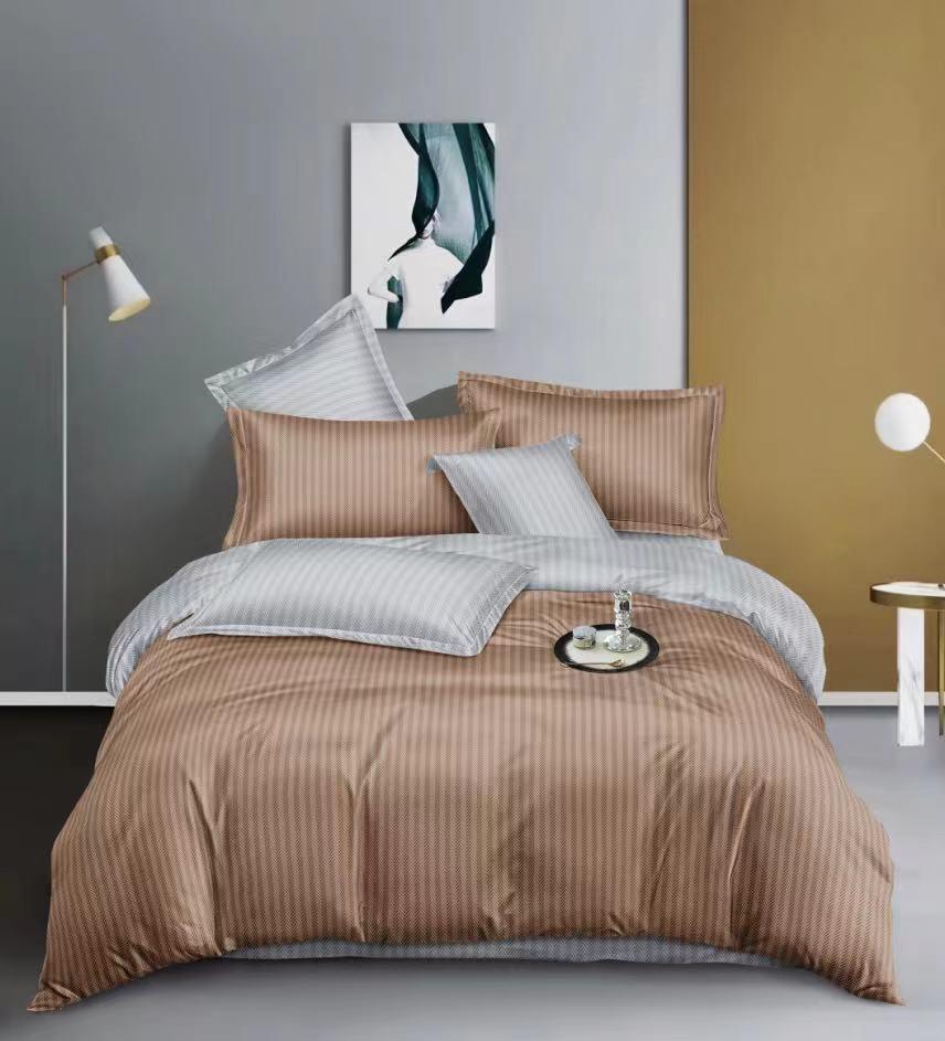 غيّر غرفة نومك مع طقم أغطية اللحاف المكون من أربع قطع، والمصنوع من قماش قطني 100%. يتميز هذا الطقم المطبوع الفاخر بكثافة خيوط تصل إلى 300 خيط، وهو ناعم للغاية ولطيف على البشرة، مما يضمن لك تجربة نوم مريحة وهادئة.